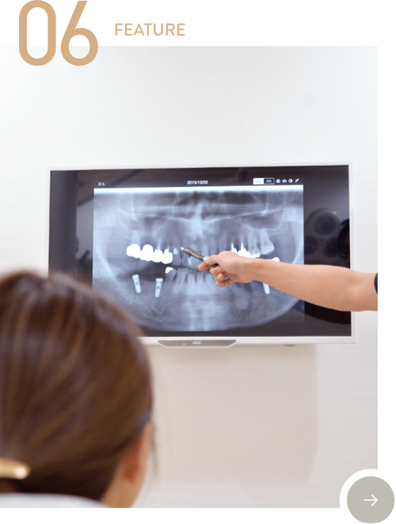 快適に治療を受け、笑顔でお帰りいただけるように、当院では患者さまとのコミュニケーションを大切にしています。一方通行の説明ではなく、患者さまのこれまでの体験や悩み、要望を踏まえて一緒に治療法を考えていきます。